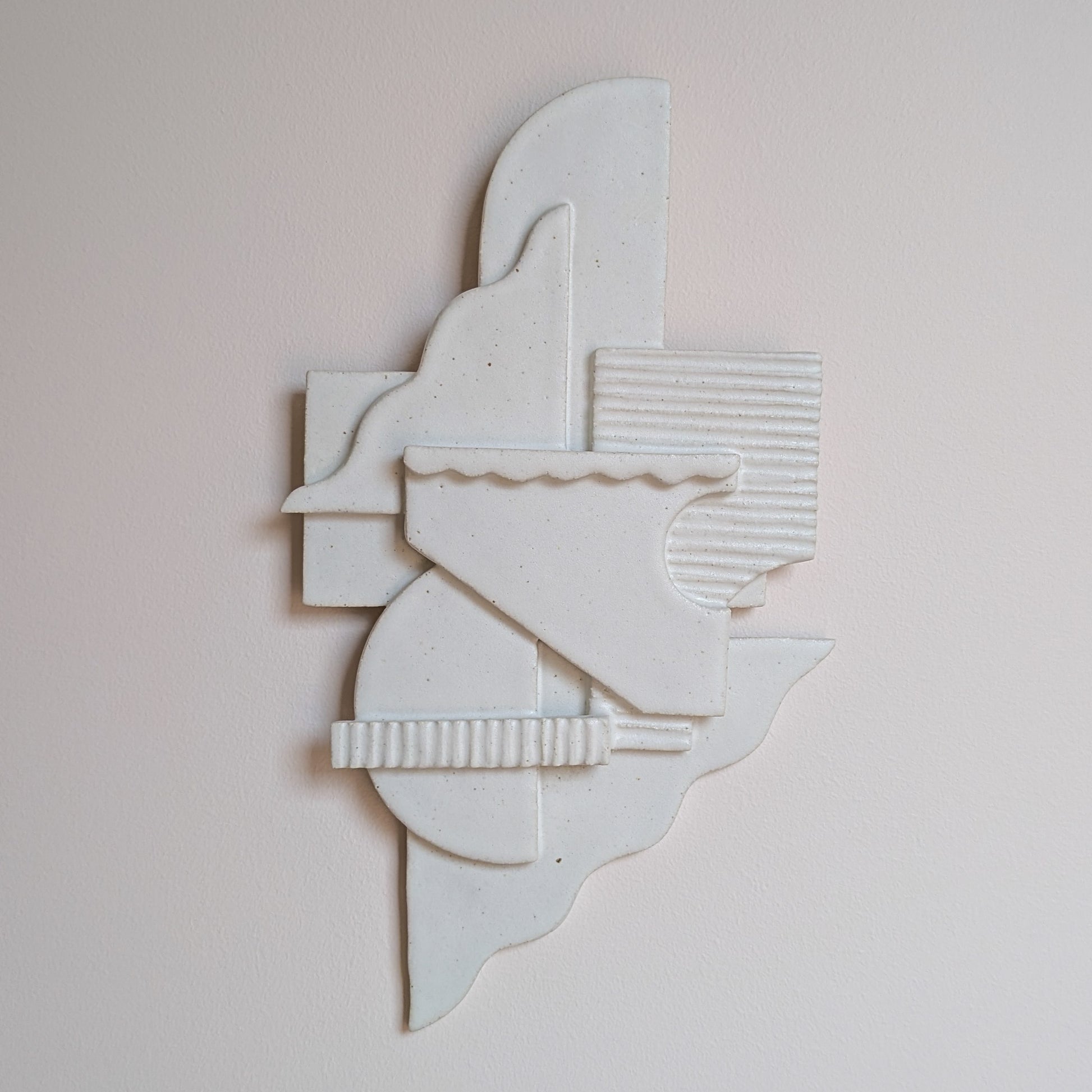 Home Again is a ceramic wall hanging handmade in my studio made from white clay and finished with a soft, creamy glaze. The piece features hand-carved detailing and layered shapes that create gentle depth and texture.