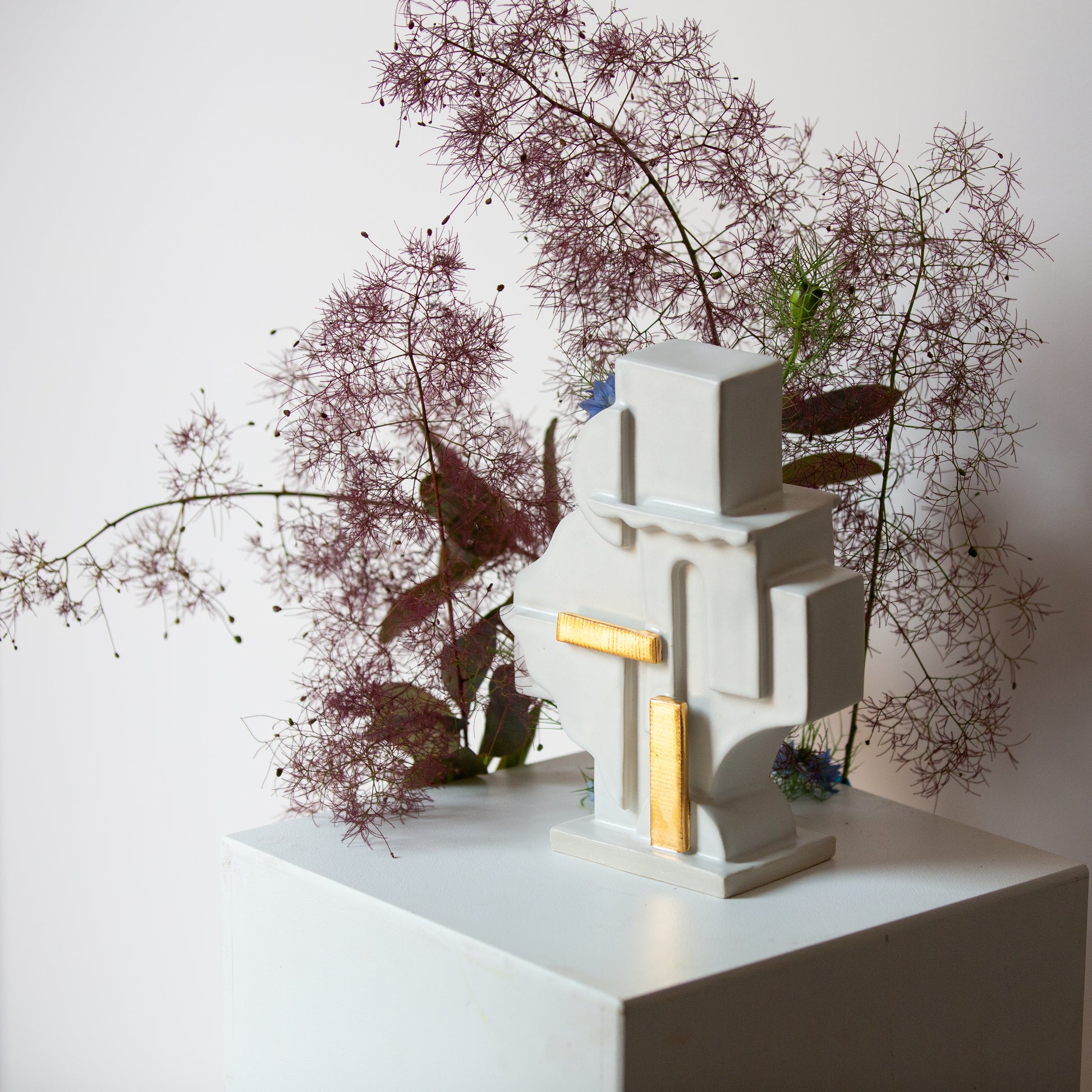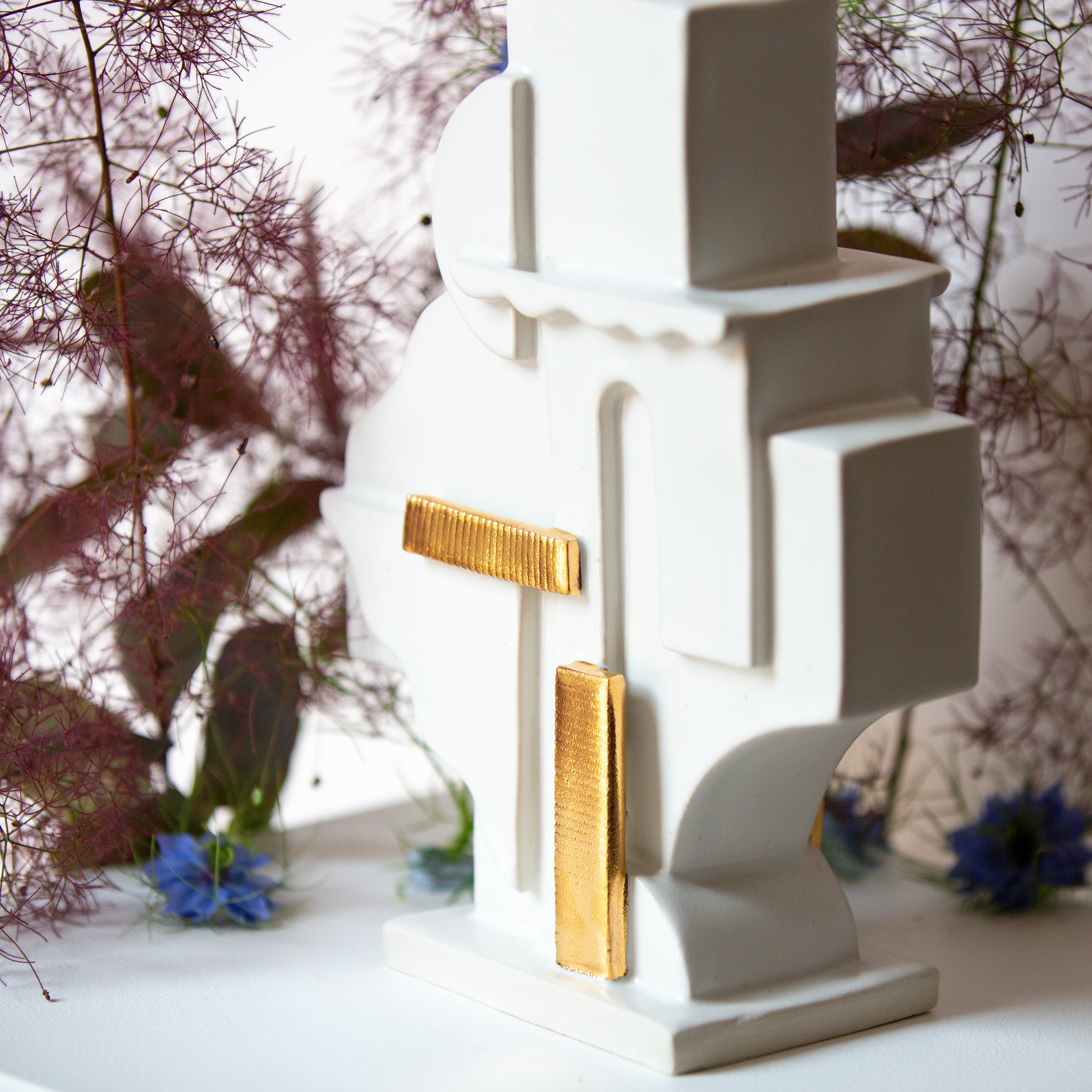 Path to the Sun is a handcrafted ceramic sculpture made in my studio in regional Victoria. The piece is built from clay and finished in a soft white glaze with gold detailing.