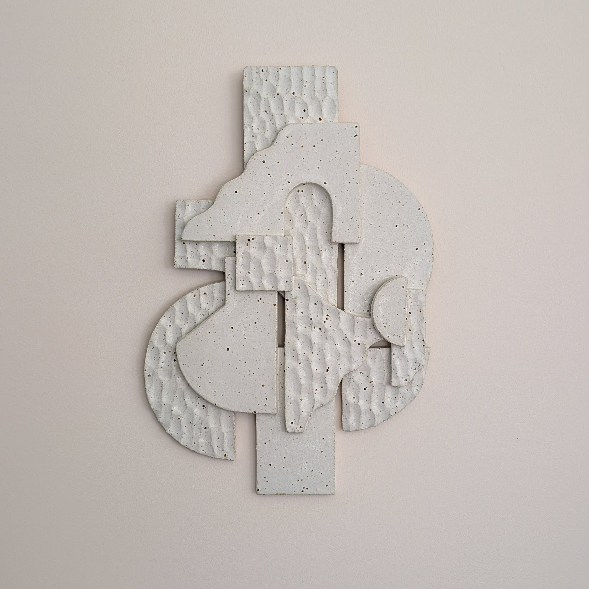 Terrain is a ceramic wall hanging, handcrafted in my regional Victorian studio. Finished with a speckled cream glaze, the surface carries warmth and natural variation. Deep carved textures cut across sections of the piece, evoking the ridges and patterns found in landscapes, contrasted against areas of smooth calm.